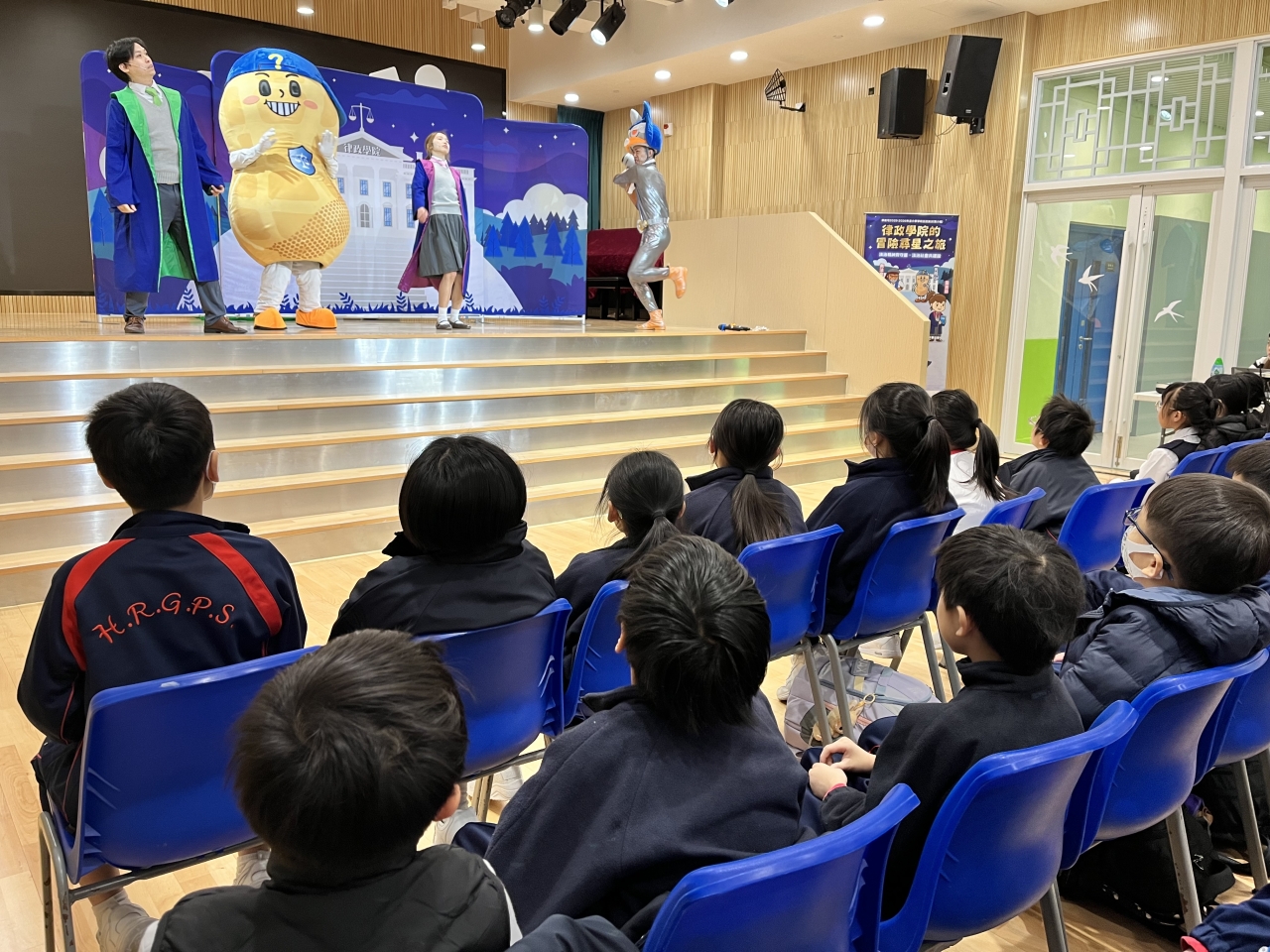 本校四至六年級學生於2026年1月7日觀賞由律政司主辦的《透過戲劇實踐法治—律政學院的冒險尋星之旅》互動劇場,透過生動有趣的戲劇表演,讓學生理解正確的法治觀念,培養他們的守法意識,並提升他們的守法精神。