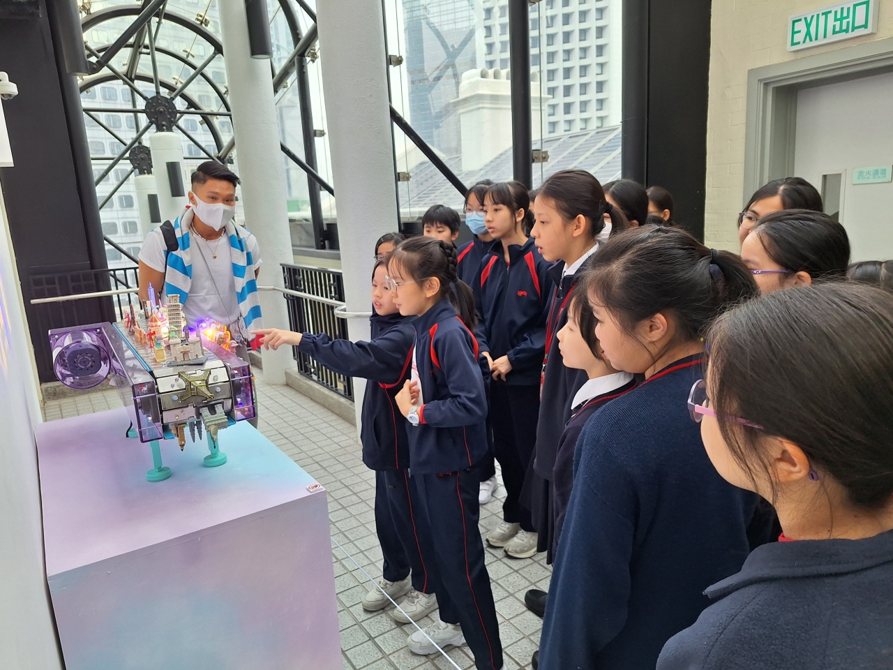 本校19位藝術特工在2025年12月4日參加了「2025/26 莘莘入場:學校文化日計劃」到香港視覺藝術中心參與「幻影」展覽學校導賞團。透過親身觀賞光影結合的表演,欣賞藝術家利用懷舊塑膠玩具、文具及富香港特色的現成物創作的立體雕塑作品,讓學生認識藝術裝置和藝術家的整個創作構想。