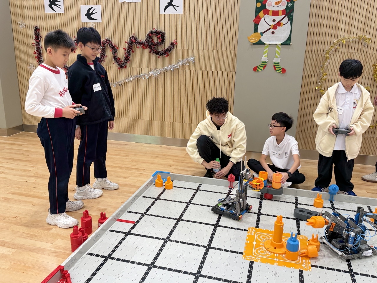 本校獲新加坡VEX IQ官方代表邀請,於2025年12月15日進行VEX IQ機械人的交流活動和友誼賽。十六位新加坡學生及教練與本校VEX IQ機械人校隊成員在活動中分享參賽經驗、組裝機械車的心得,同時進行兩地之間的友誼賽,學習機會難得。
