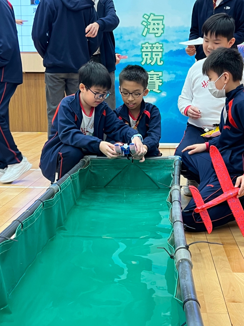 為提升學生對STEAM學習的興趣和能力,本校6位五至六年級同學參加由鄧肇堅維多利亞官立中學舉辦的「速度之巔.海陸空競賽」,同學當日運用大會提供的物資進行設計及製作不同作品,並進行電動船、遙控車及滑翔機任務挑戰。