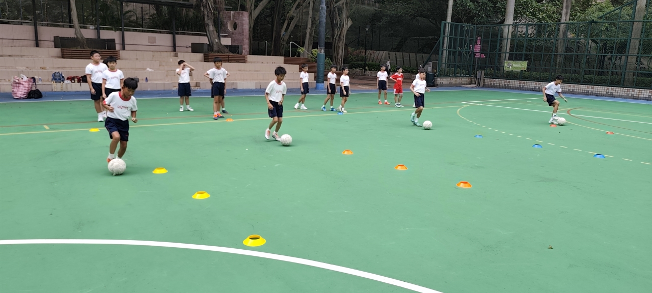 本校足球隊成員自二年級起,便於課外活動時段接受基礎訓練,表現優異的學生將獲甄選加入課後足球校隊,參與更為正規及高階的技巧訓練。同學們有機會代表學校參加「港島西區小學校際五人足球比賽」及各類正式賽事,從中累積寶貴的實戰經驗,有助成長。