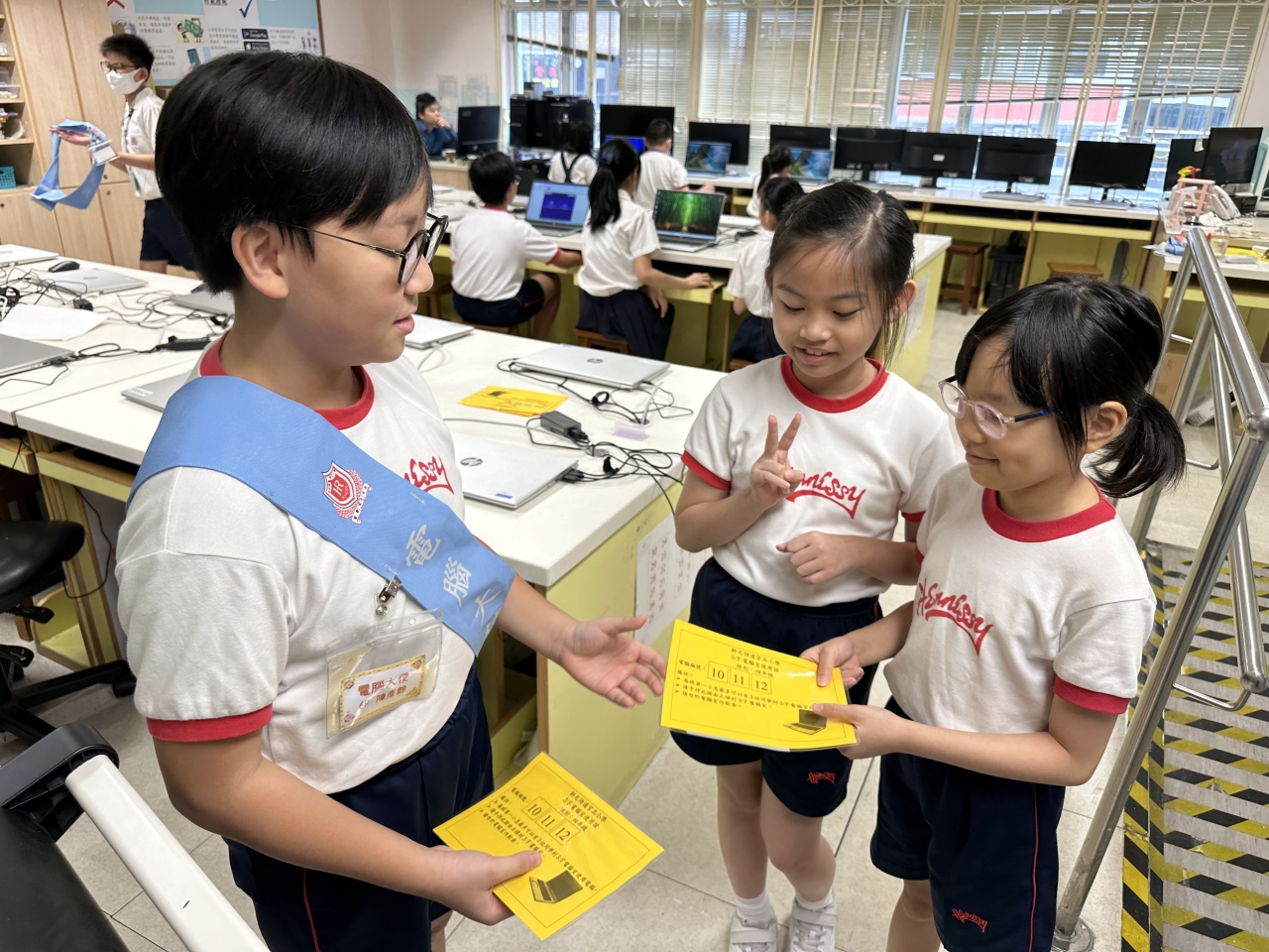 電腦大使是由四至六年級的同學組成,職責是維持學生使用電腦室時的秩序,並於當值期間,以仁愛、關懷的態度,協助學生解決使用電腦的困難。他們會輪流於每天的第一小息當值,執行他們的服務工作。