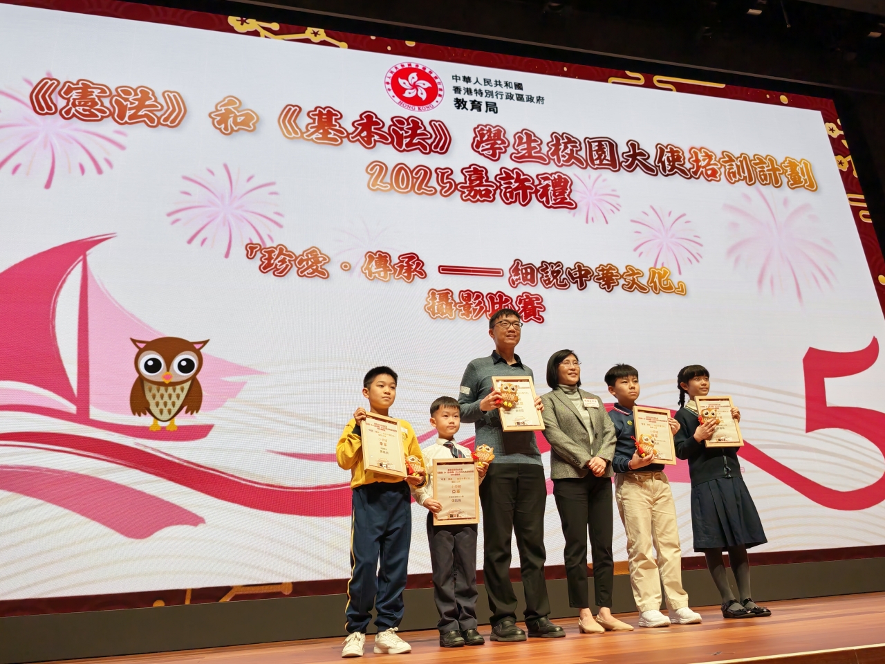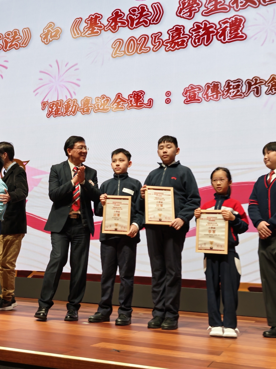 為了增加學生對《憲法》和《基本法》的認識,本校參與了《憲法》和《基本法》學生校園大使培訓計劃及相關比賽,同學在比賽中表現優秀,分別獲得以下獎項: