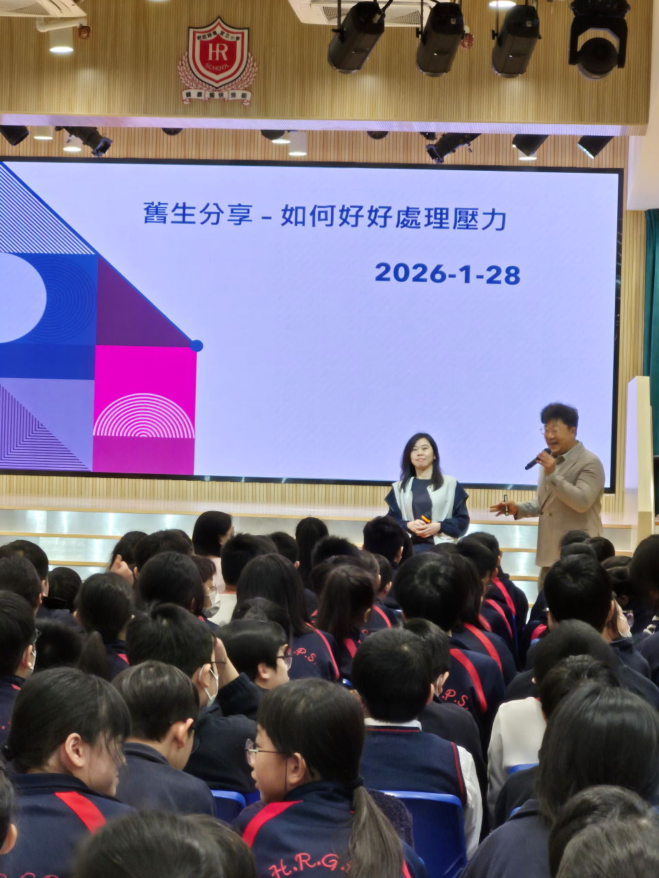 在1月28日,本校舊生會主席莫躍孺先生和黃佩玲女士重返校園,為五、六年級學生舉行了一場以「如何好好處理壓力」為主題的分享會。兩位校友以學長的身份,結合自身的成長經驗和專業知識,引導學生認識壓力的來源,學習減壓的方法。他們鼓勵學生以積極的心態面對學習和生活中的挑戰,並將壓力轉化為動力。此次分享會不僅為高年級學生提供了實用的減壓方法,還增強了校友與母校之間的聯繫。