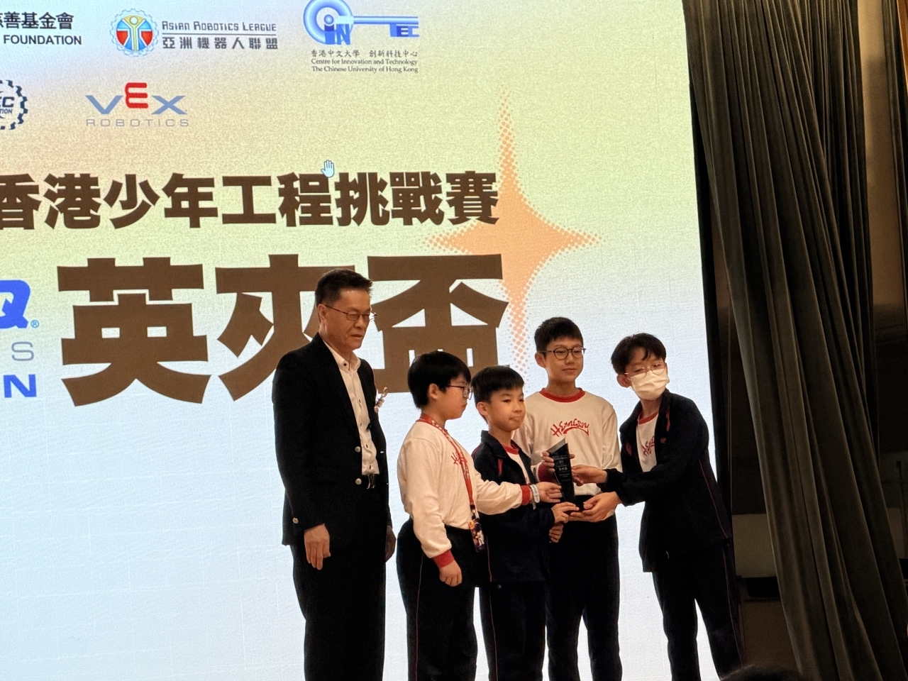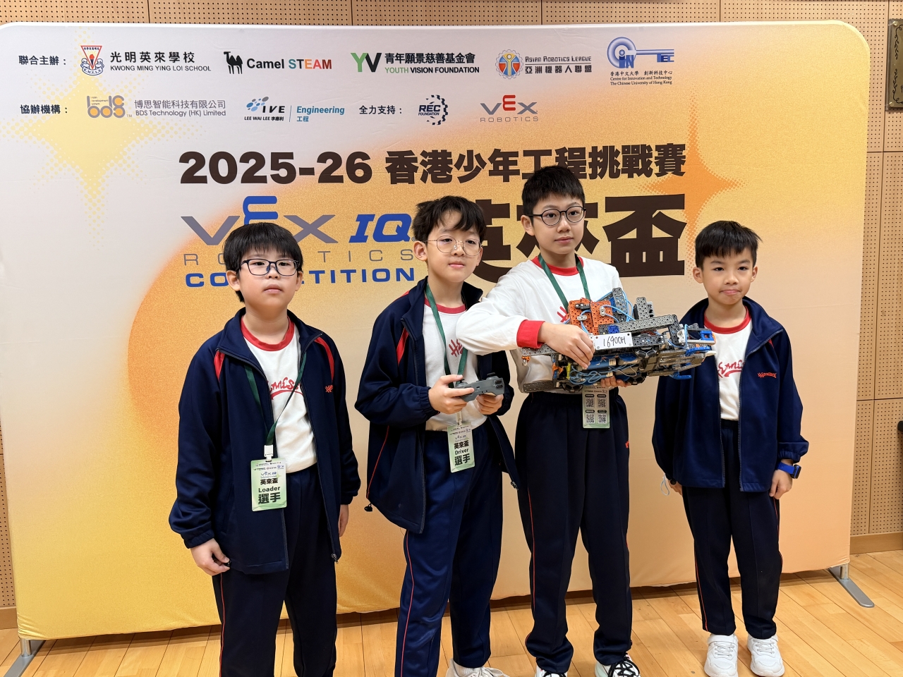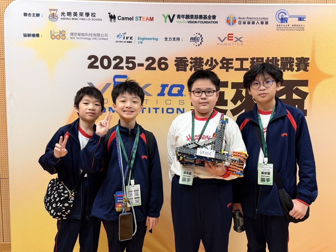 本校8位VEX IQ機械人校隊成員參加由亞洲機械人聯盟及光明英來學校聯合主辦的「香港少年工程挑戰賽VEX IQ(英來盃)」,透個組裝和設計機械車,並運用編程控制機械車進行任務,表現優異,獲得工程設計獎。