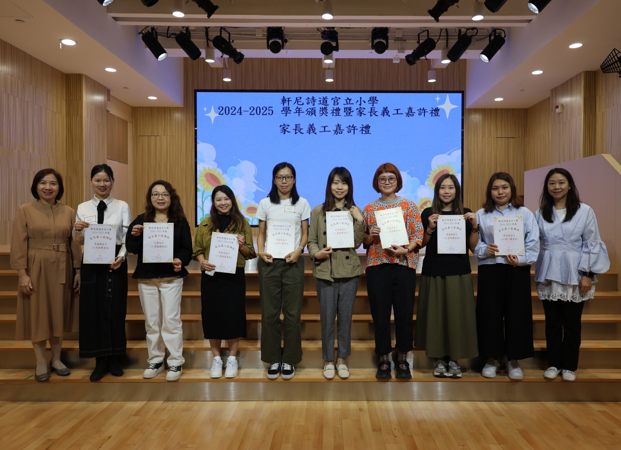 為嘉許同學於2024-2025學年之努力及優秀表現,2024-2025學年頒獎禮暨家長義工嘉許禮已於十一月七日 (星期五) 順利舉行,當天頒發獎項包括:全級學業獎、全班學業獎、進步獎、操行獎、服務獎、傑出學生、校外獎學金及舊生會獎學金等。此外,亦舉行家長義工嘉許禮,十分感謝家長們在過去一年為學校服務。典禮後更安排粵劇表演,同學們表現精彩,氣氛熱烈。