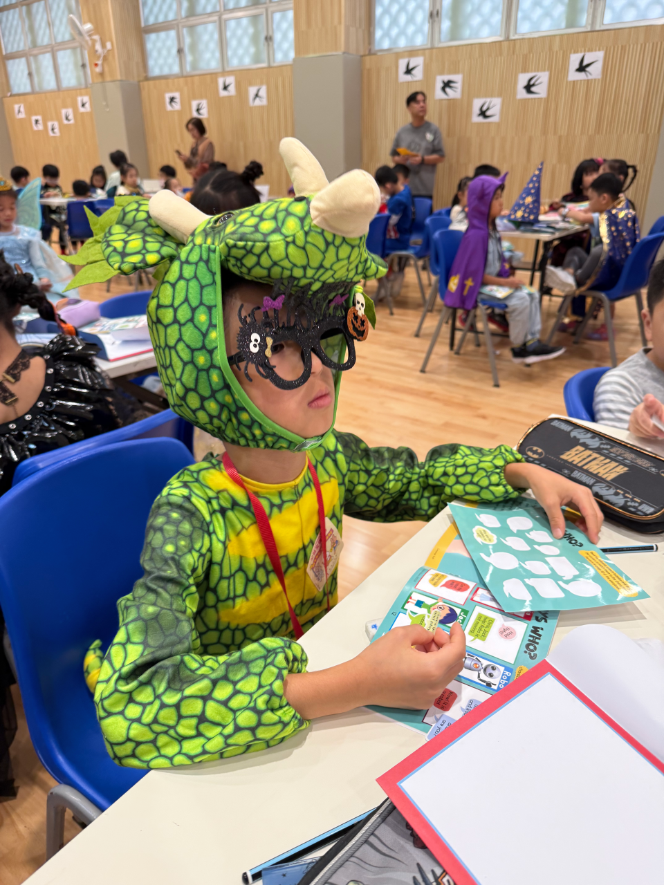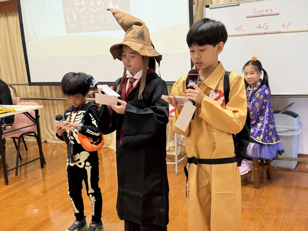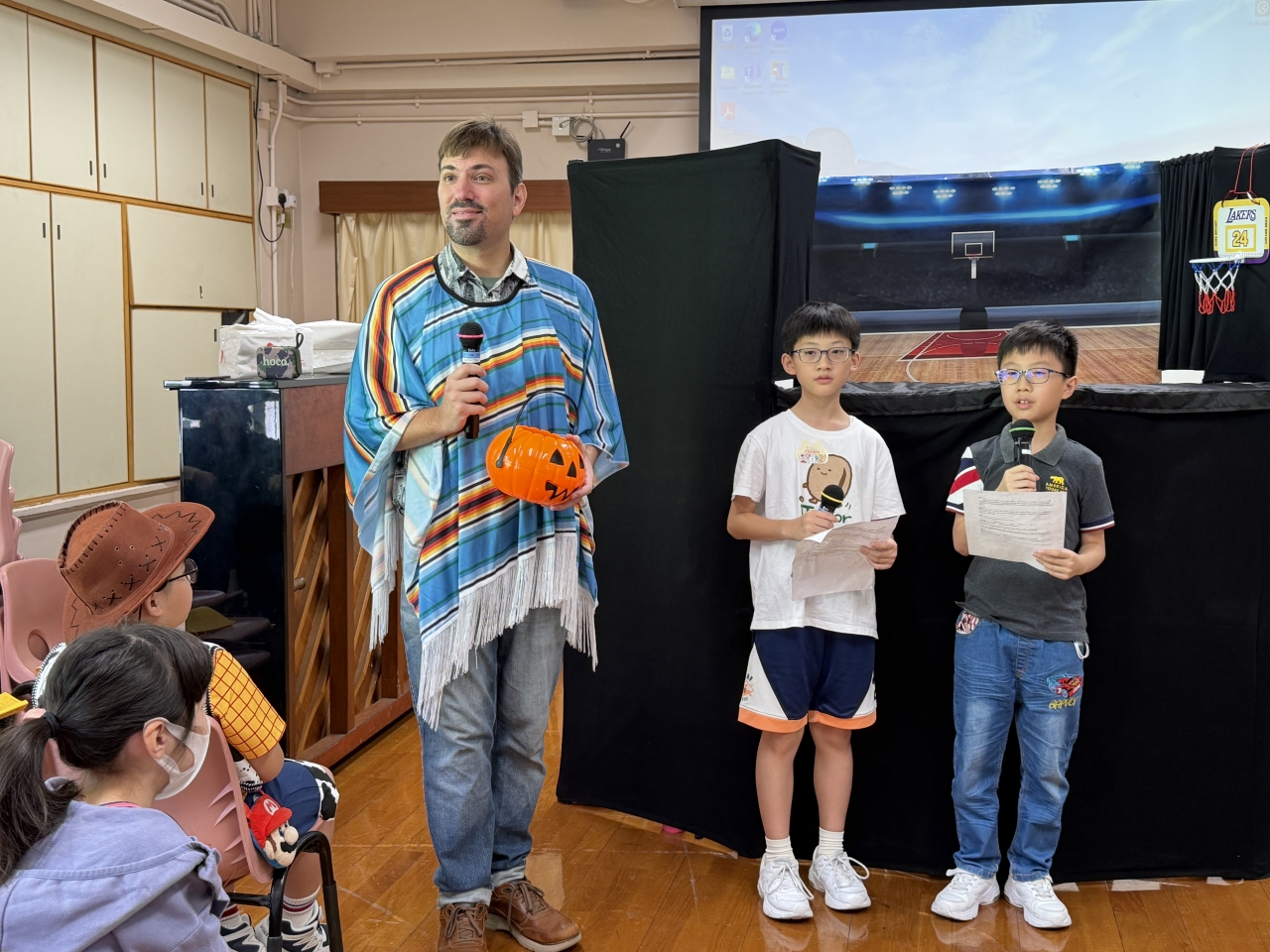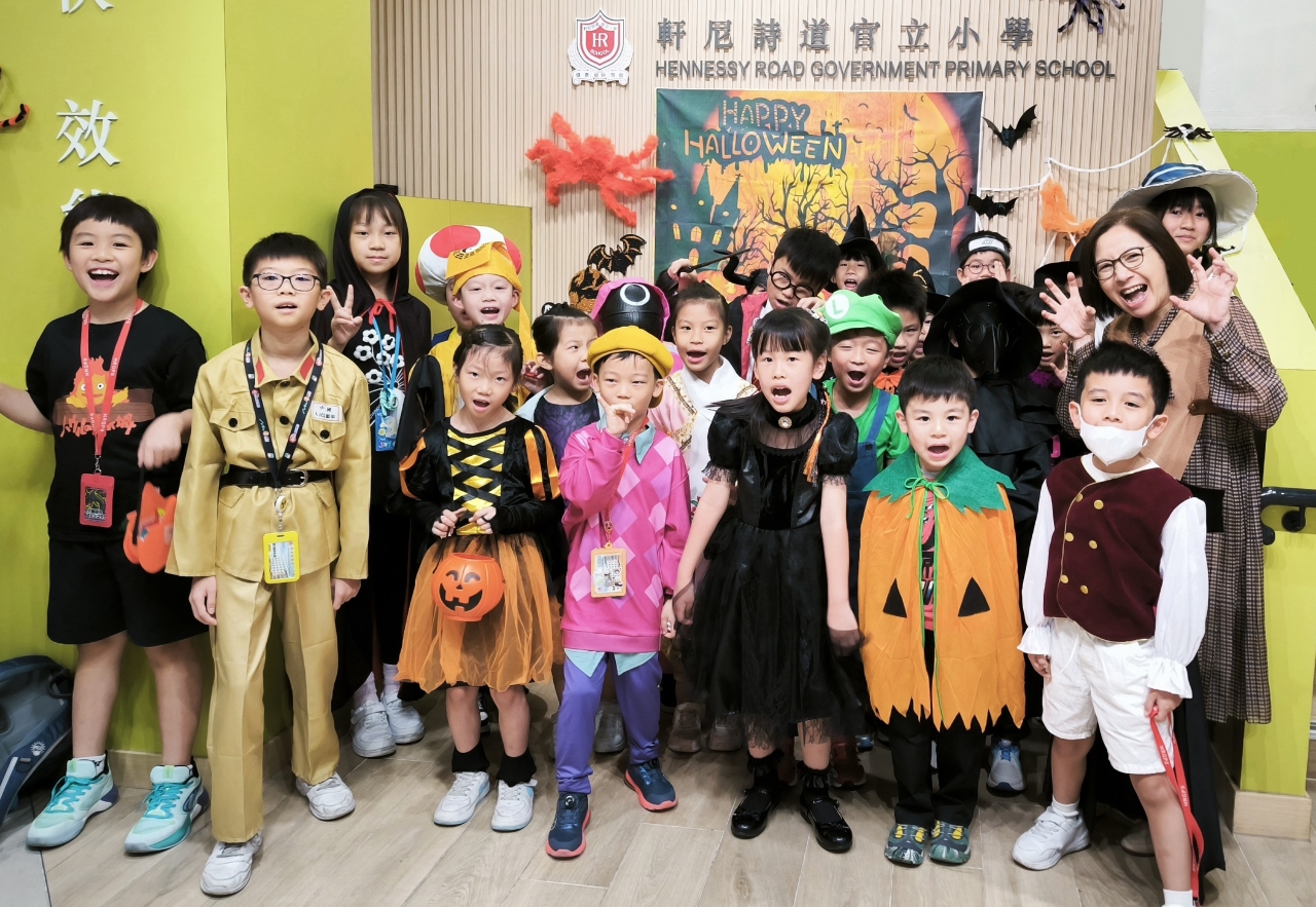 This year’s Halloween was an extraordinary day for our students as it was also our English Day / Dress Casual Day. In order to teach students more about festivals, we set a theme ─ ‘Festivals’ for our English Day. All students could dress in festival costumes and enjoy many activities; including their presentation about festivals, game booths prepared by enhancement groups’ students, SCOLAR activities, a puppetry performance, interactive theatre, tongue twister and ‘Candy Guess’. The winning class, 1G won 294 sweets in ‘Candy Guess’. They were so generous to share their super treat with the whole P.1 level. Good job, 1G! Every student had a good harvest of candy to bring back home on that day!