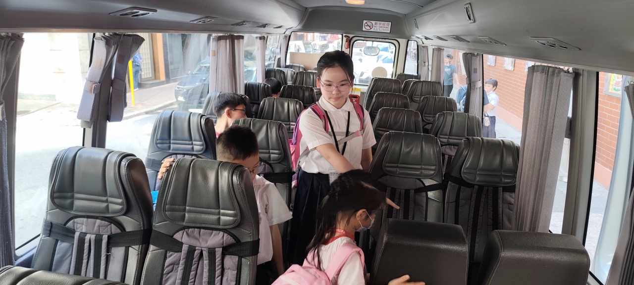 本校設有校車服務,並從各條路線中挑選同學擔任車長。放學時,