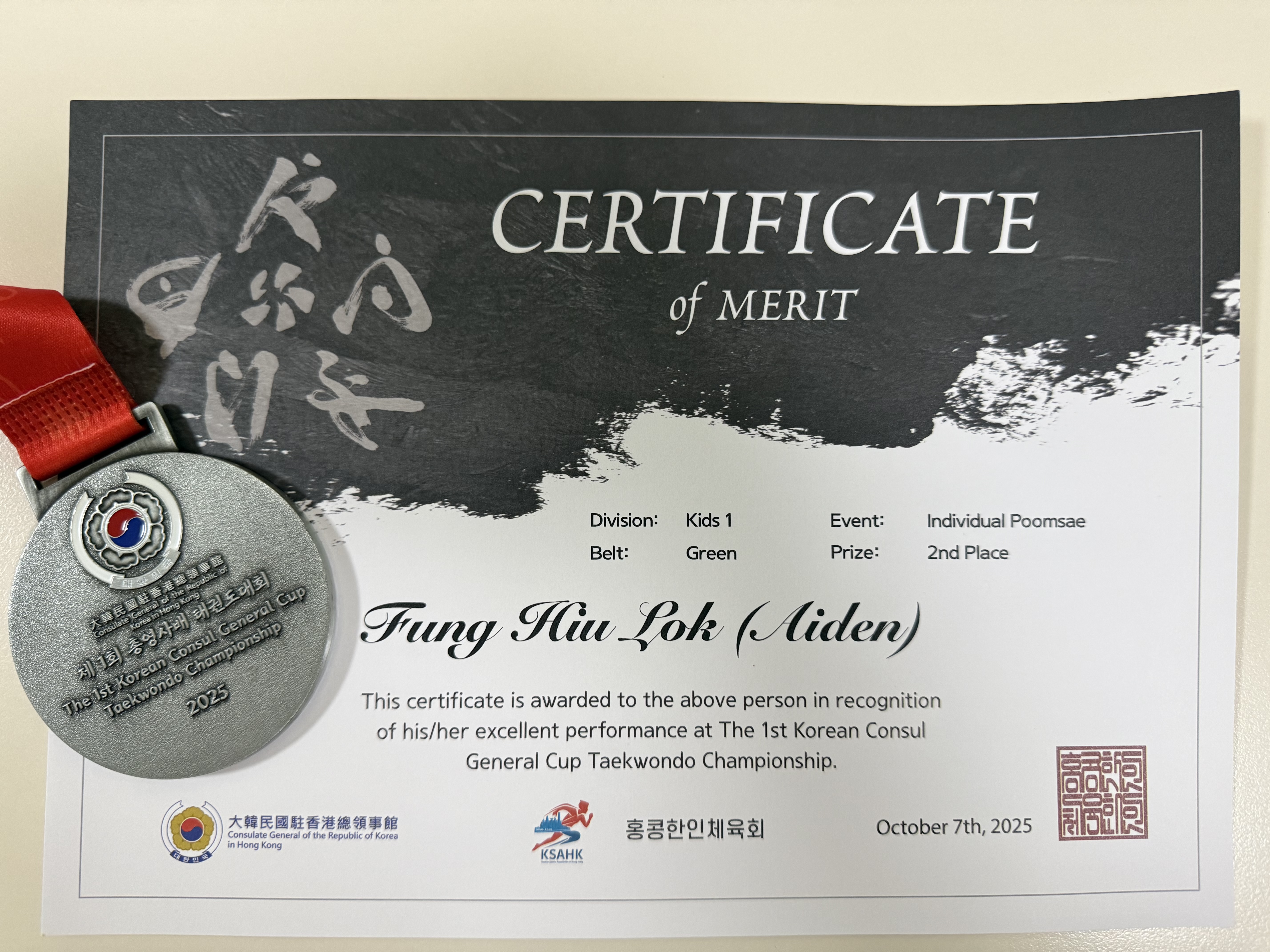 Kids 1 (Green), 2nd Place舉辦日期:29/10/2025主辦機構:大韓民國駐香港總領事館 -