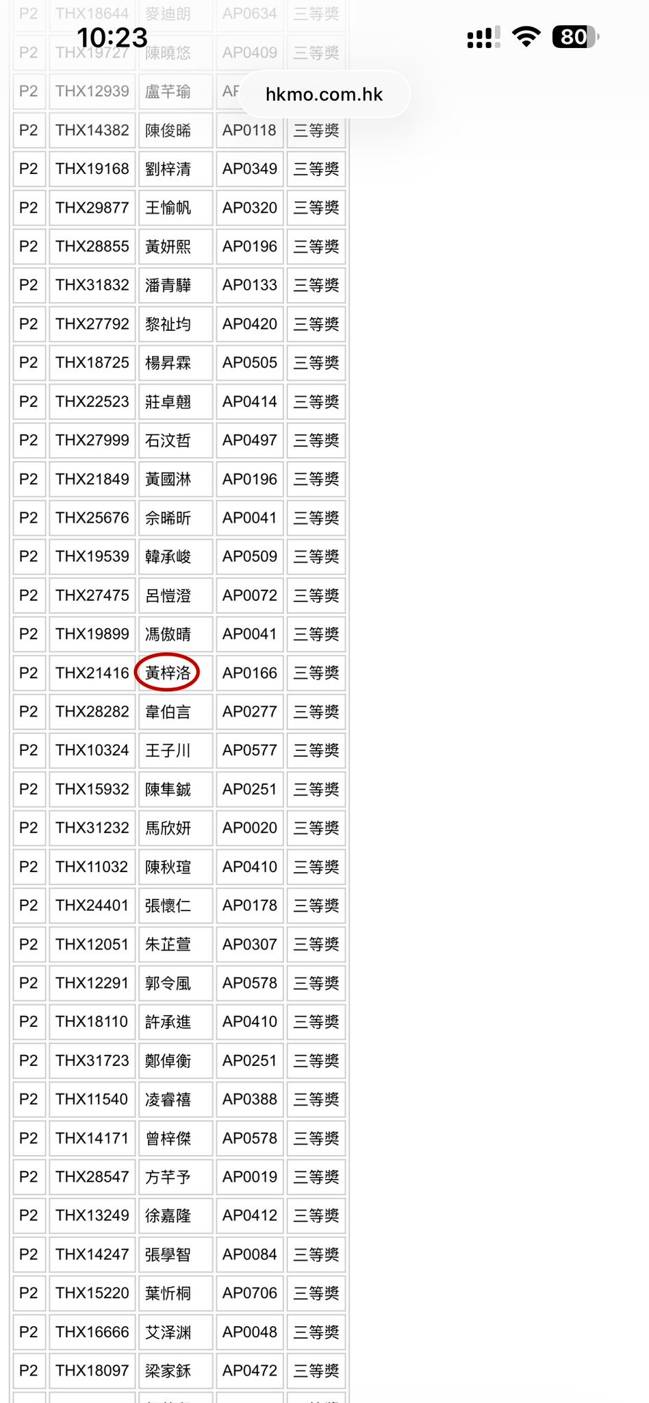 泰國國際數學競賽初賽 2025-2026(香港賽區)得獎學生:3P 呂諾行獎項: