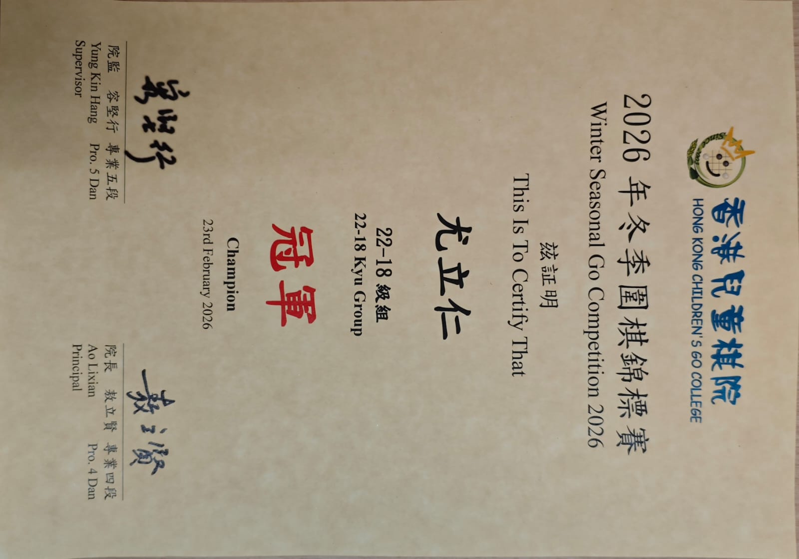 22-18級組 冠軍