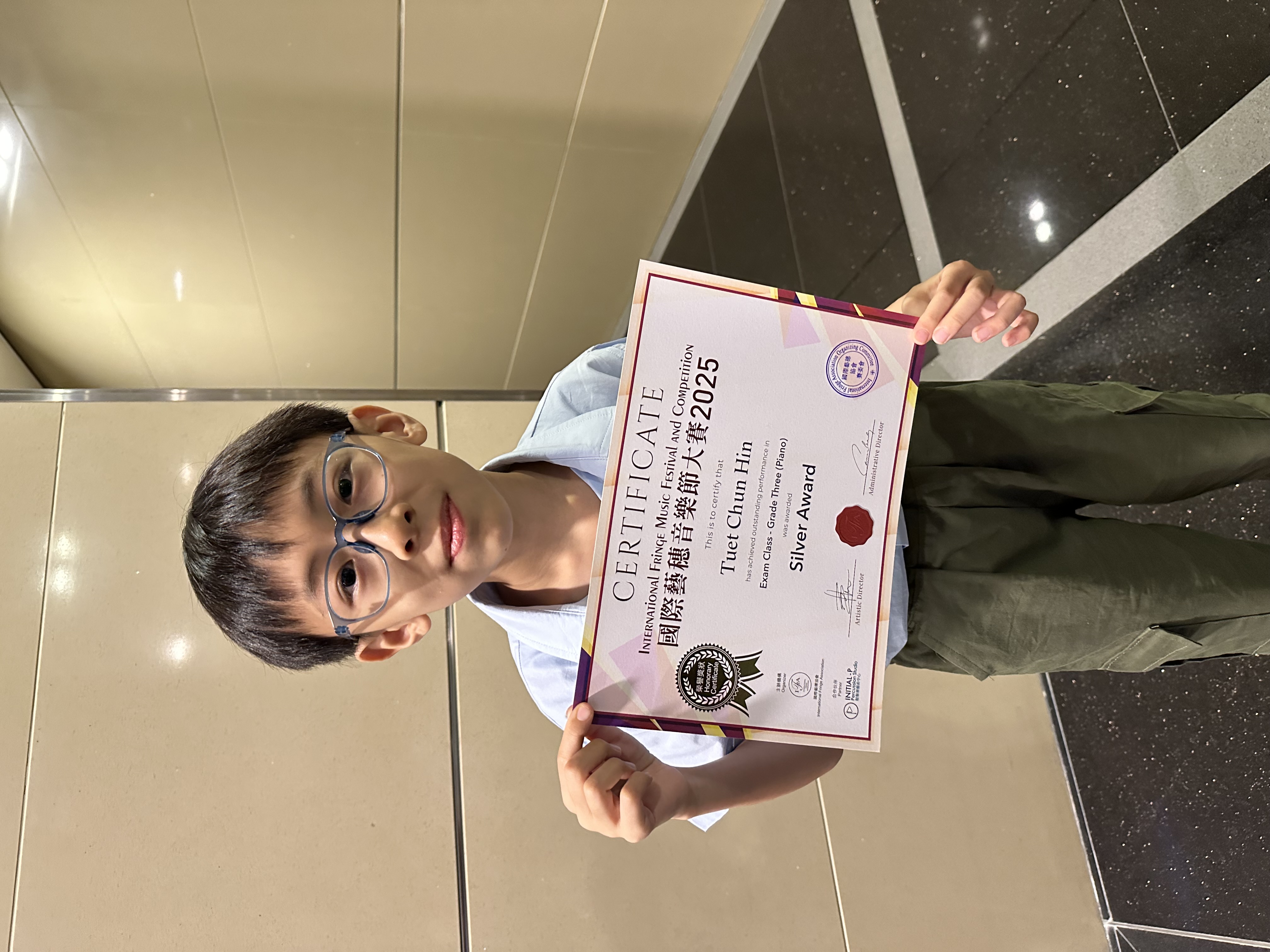 Exam Class - Grade 3 (Piano) Silver Award舉辦日期:07/09/2025主辦機構:國際藝穗協會 -