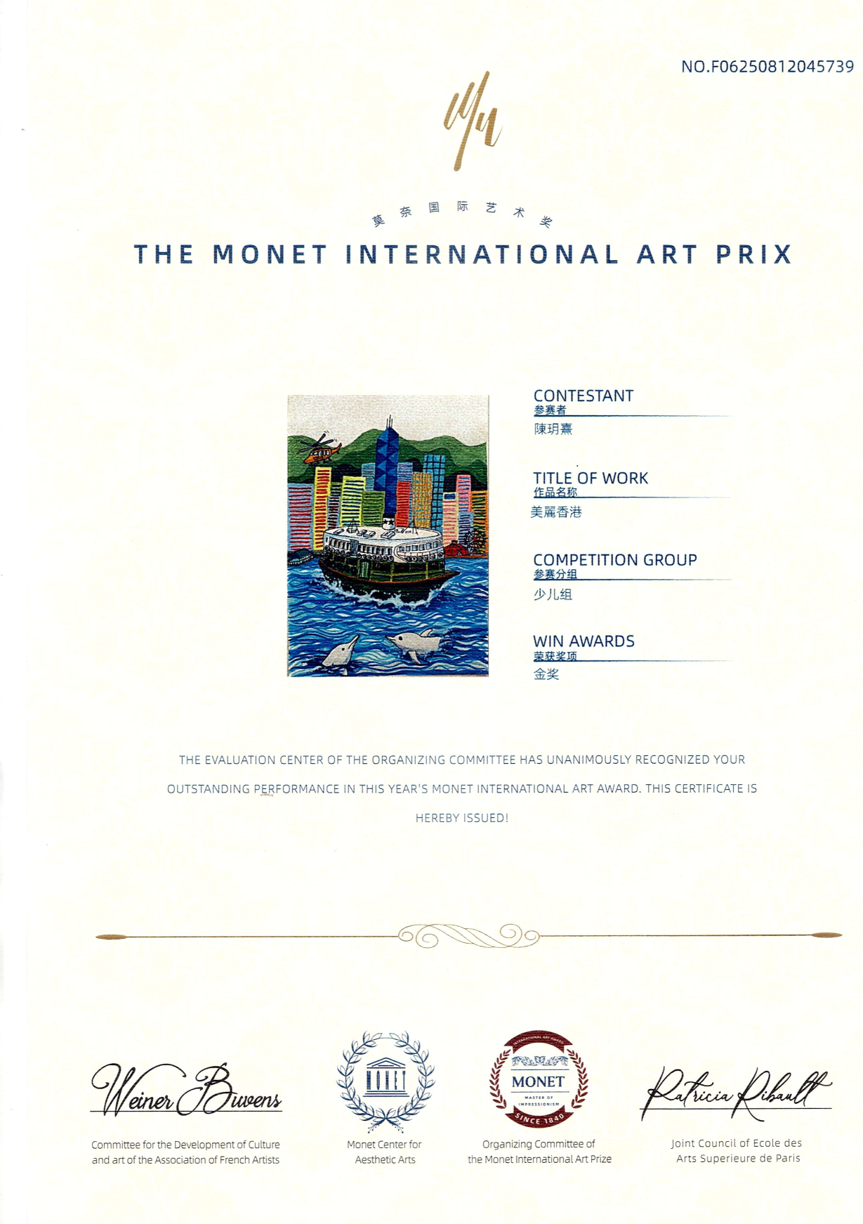 莫奈國際藝術獎得獎學生:2G 陳玥熹獎項: