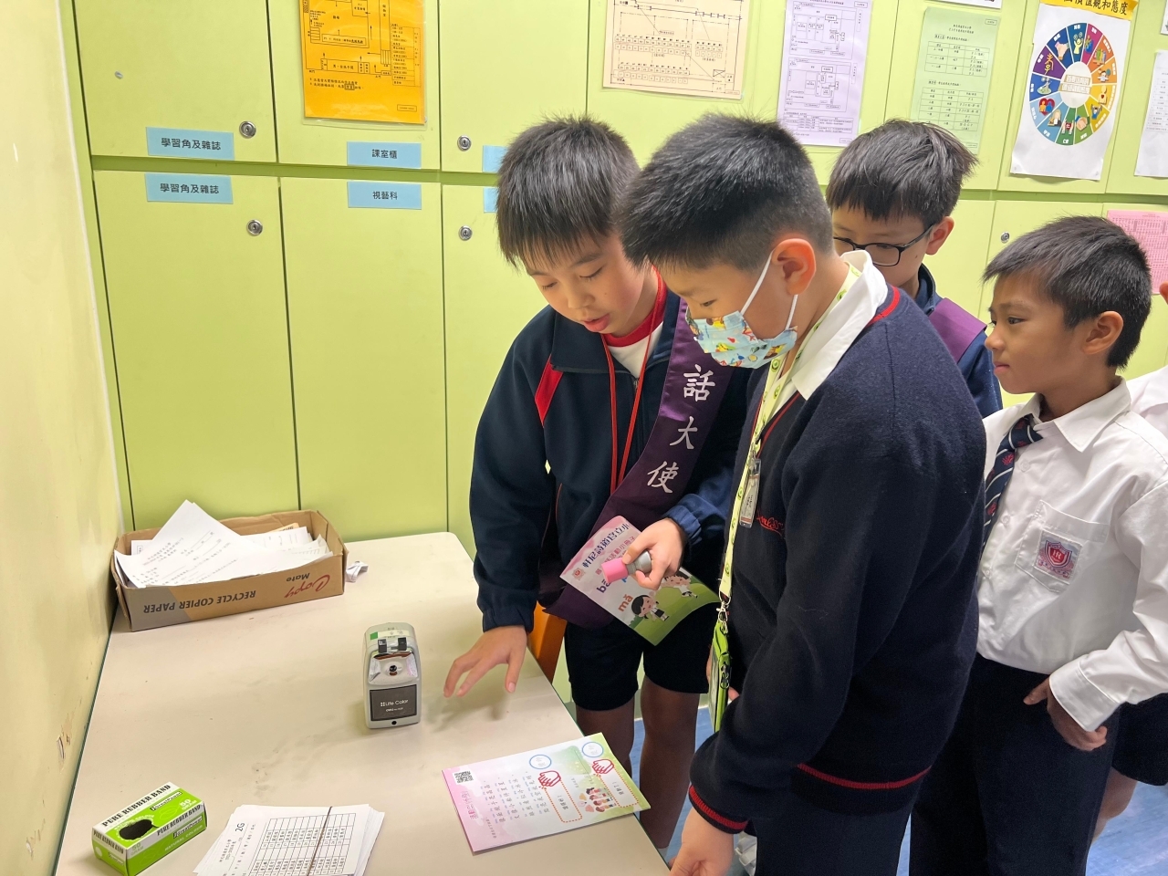 - 全校獲發普通話活動小冊子,普通話大使於課間休息時到教室跟同學們進行活動,集齊獎印可以換取禮物。通過活動促進同學們自主學習的能力。